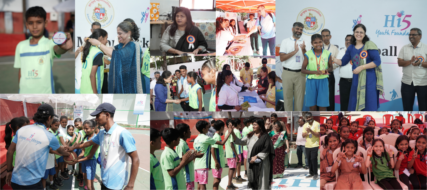 Hearts pounding, sneakers squeaking, and the crowd roaring the Mayor Basketball cup has set the court ablaze. At Hi 5 Youth foundation we believe that every child deserves a shot at success. This weekend the Mayor Basketball Cup 2026, made this belief come to life. This tournament was organized by Hi 5 Youth Foundation in association with the Brihanmumbai Municipal Corporation (BMC) on February 27th & 28th, 2026 at Motilal Nagar BMC School, Goregaon West.
